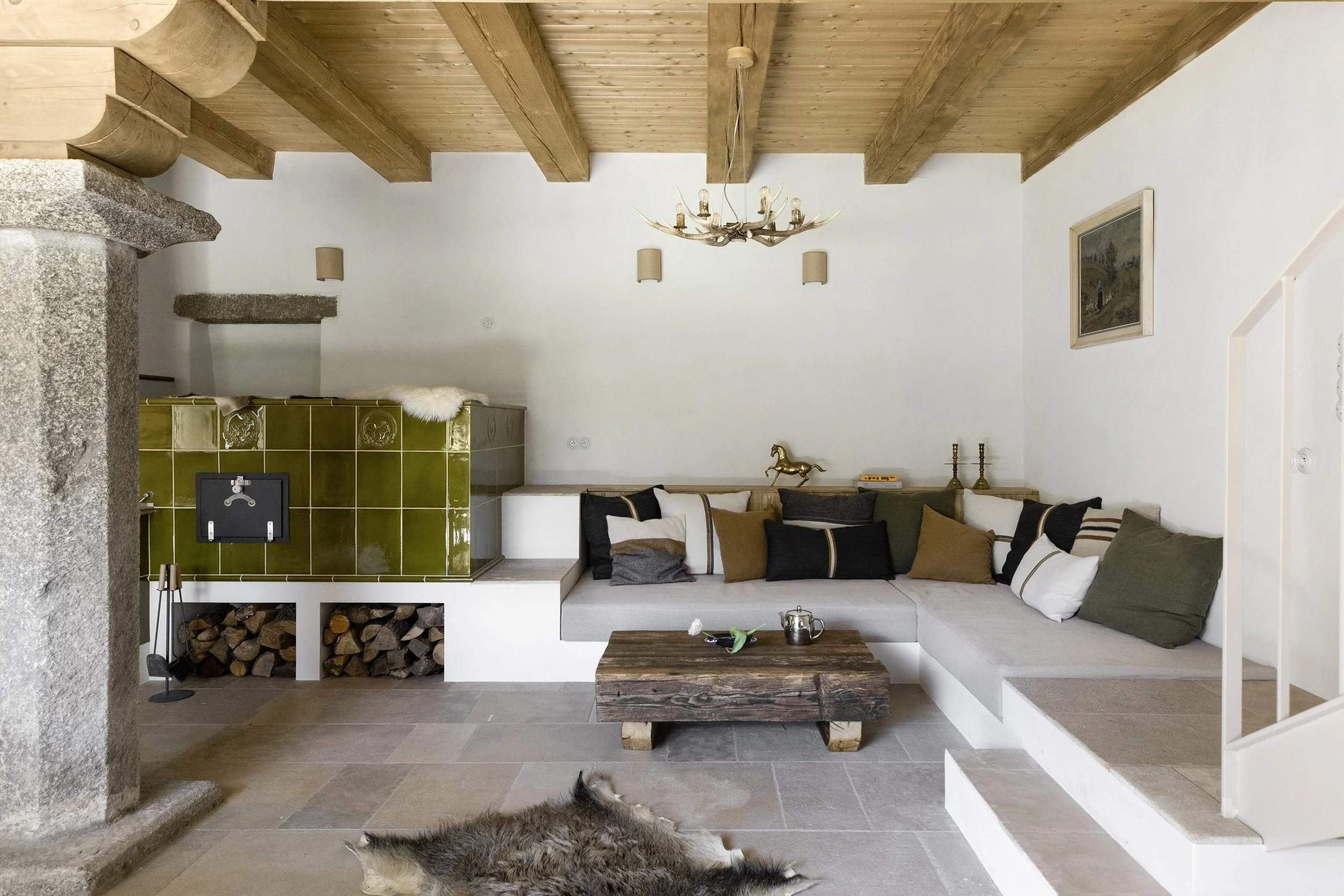 For this restoration of a historical water mill in Southern Bohemia, I have designed both the interior and exterior of the house. When we started there was only the perimeter wall. This was a project for Brothers Estates .